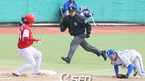 프로야구 시범경기가 17일 제주 마산 수원 광주서 일제히 막이 올랐다. 제주 오라구장에서 벌어진 삼성 라이온즈와 한화 이글스의 경기 한화의 3회초 무사 1,3루서 조원우의 3루수 라인드라이브 타구 때 3루주자 고동진이 황급히 귀루하고 있다./제주=김영민 기자ajyoung@osen.co.kr [Copyright ⓒ 한국 최고의 스포츠 엔터테인먼트...