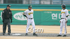 17일 2007 프로야구 시범경기가 수원 광주 마산 제주에서 일제히 열렸다. 수원에서 벌어진 현대 유니콘스와 두산 베어스의 경기 1회말 1사 1,2루 이숭용의 좌익수 플라이 때 1루주자 이택근이 2루를 지나쳐 1루로 백업할 때 2루를 안밟고 돌아와 아웃이 되자 이광근 코치가 웃고 있다./수원=손용호 기자spjj@osen.co.kr [Copyright...
