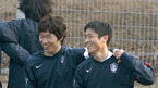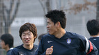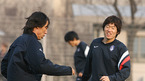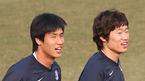 오는 24일 서울 월드컵경기장에서 벌어지는 우루과이와의 경기에 출전할 대표팀이 22일 오후 상암 보조구장에서 훈련을 가졌다. 박지성과 정조국이 밝은 표정으로 나란히 훈련에 임하고 있다./상암=김영민 기자ajyoung@osen.co.kr [Copyright ⓒ 한국 최고의 스포츠 엔터테인먼트 전문 미디어 OSEN(www.osen.co.kr)...