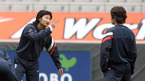 우루과이와의 친선경기를 하루 앞둔 태극전사들이 23일 서울 상암월드컵구장에서 마지막 적응 훈련을 가졌다. 설기현이 홍명보 코치가 지켜보는 가운데 슈팅 훈련을 하고 있다./상암=손용호 기자spjj@osen.co.kr [Copyright ⓒ 한국 최고의 스포츠 엔터테인먼트 전문 미디어 OSEN(www.osen.co.kr) 무단전재 및 재배포 금지]