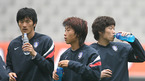 우루과이와의 친선경기를 하루 앞둔 태극전사들이 23일 서울 상암월드컵구장에서 마지막 적응 훈련을 가졌다. 조재진 김두현 박지성이 음료수를 마시며 갈증을 달래고 있다./상암=손용호 기자spjj@osen.co.kr [Copyright ⓒ 한국 최고의 스포츠 엔터테인먼트 전문 미디어 OSEN(www.osen.co.kr) 무단전재 및 재배포 금지]