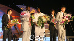 2006-2007 현대모비스 프로농구 정규리그 시상식이 27일 하야트호텔에서 많은 선수들과 코칭스태프가 참석한 가운데 성대하게 열렸다. 수비 5걸에 선정된 김주성 이병석 강혁 은희석이 나란히 서 있다. 왓킨스는 미국에 가 있어 불참했다./손용호 기자spjj@osen.co.kr [Copyright ⓒ 한국 최고의 스포츠 엔터테인먼트 전문 미디어...