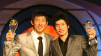 2006-2007 현대 모비스 프로농구 정규리그 시상식이 27일 오후 서울 하얏트호텔에서 성대하게 열렸다. 울산 모비스의 우지원이 팀 선배인 이창수로부터 식스맨상을 받고 있다./손용호 기자spjj@osen.co.kr [Copyright ⓒ 한국 최고의 스포츠 엔터테인먼트 전문 미디어 OSEN(www.osen.co.kr) 무단전재 및 재배포 금지]