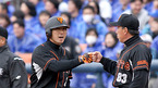 일본 프로야구 요미우리 자이언츠와 요코하마 베이스타스의 시즌 2차전 경기가 31일 요코하마 베이스타디움에서 열렸다. 1회초 이승엽이 내야플라이로 아웃돼 공수가 교대되자 다카하시가 모자와 글러브를 갖다주며 얘기를 건네고 있다. /요코하마=손용호 기자spjj@osen.co.kr [Copyright ⓒ 한국 최고의 스포츠 엔터테인먼트 전문 미디어...