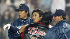 2007 프로야구 서울 라이벌 두산 베어스와 LG 트윈스의 경기가 4일 잠실 야구장에서 벌어졌다. 5회말 1사 1루 안경현 타석때 봉중근의 볼이 머리위로 날아가자 흥분한 안경현이 봉중근에게 달려가 난투극이 벌어져 봉중근이 마운드에 쓰러져 있다./잠실=손용호 기자spjj@osen.co.kr <2007 삼성 PAVV 프로야구> [Copyright ⓒ...