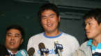 미국 탬파베이 데블레이스를 떠나 KIA 타이거즈와 계약금 8억 원, 연봉 3억 5000만 원, 옵션 4억 원 등 총 15억 5000만 원에 입단 계약을 맺은 최희섭이 11일 정재공 단장과 함께 인천공항을 통해 입국했다. 최희섭이 많은 취재진에 둘러싸여 인터뷰하고 있다./인천공항=손용호 기자spjj@osen.co.kr <2007 삼성 PAVV...