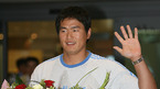 미국 프로야구 탬파베이 데블레이스를 떠나 KIA 타이거즈와 계약금 8억 원, 연봉 3억 5000만 원, 옵션 4억 원 등 총 15억 5000만 원에 입단 계약을 맺은 최희섭이 11일 오후 정재공 단장과 인천공항으로 동반 입국했다. 최희섭이 취재진에게 손을 흔들며 인사하고 있다./인천공항=손용호 기자spjj@osen.co.kr <2007 삼성...