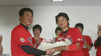 2007 삼성PAVV 프로야구 현대 유니콘스와 KIA 타이거즈 경기가 15일 수원 야구장에서 열렸다. 스승의 날을 맞이하여 KIA 주장 이종범이 서정환 감독에게 경기 전에 감사의 꽃다발을 전달하고 있다./수원=김영민 기자ajyoung@osen.co.kr <2007 삼성 PAVV 프로야구> [Copyright ⓒ 한국 최고의 스포츠 엔터테인먼트 전문...