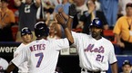30일(한국시간) 뉴욕의 셰이 스타디움에서 벌어진 뉴욕 메츠와 샌프란시스코의 연장전 12회말 2사 3루서 샌프란시스코 투수 아르만도 베니테스의 보크로 3루주자 호세 레예스가 홈인, 4-4 동점을 만든 뒤 타석에 있던 카를로스 델가도와 하이파이브를 하고 있다./셰이스타디움(뉴욕)=주지영 특파원 jj0jj0@osen.co.kr [Copyright ⓒ...