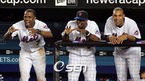 30일(한국시간) 뉴욕의 셰이 스타디움에서 벌어진 뉴욕 메츠와 샌프란시스코의 연장전 메츠의 10회말 2사 만루 데이빗 라이트 타석 때 덕아웃에서 호세 레예스, 루벤 고테이, 카를로스 고메스(왼쪽부터)가 끝내기 안타가 나오기를 기대하며 경기를 지켜보고 있다./셰이스타디움(뉴욕)=주지영 특파원 jj0jj0@osen.co.kr [Copyright ⓒ...