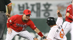 2007 삼성PAVV 프로야구 SK 와이번스와 KIA 타이거즈의 경기가 31일 문학 야구장에서 열렸다. SK의 6회말 2사 1루 나주환 타석 때 2루 주자 박재홍이 리드를 많이 하다 KIA 포수 김상훈의 견제구에 걸려 아웃되고 있다./인천=김영민 기자ajyoung@osen.co.kr <2007 삼성 PAVV 프로야구> [Copyright ⓒ 한국...