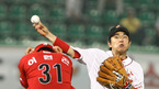 2007 삼성PAVV 프로야구 SK 와이번스와 KIA 타이거즈의 경기가 31일 문학 야구장에서 열렸다. SK의 7회말 1사 1루서 조동화 유격수 땅볼 때 1루 주자 박재상을 2루서 포스아웃시킨 KIA 2루수 손지환이 1루로 송구를 망설이고 있다./인천=김영민 기자ajyoung@osen.co.kr <2007 삼성 PAVV 프로야구>...