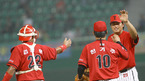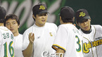 2007 삼성PAVV 프로야구 현대 유니콘스와 롯데 자이언츠의 경기가 2일 수원야구장에서 벌어졌다. 6-1로 이겨 롯데와 3연전을 싹쓸이한 현대 김시진 감독이 선수들과 하이파이브 하고 있다. /수원=황세준 기자 storkjoon@osen.co.kr <2007 삼성 PAVV 프로야구> [Copyright ⓒ 한국 최고의 스포츠 엔터테인먼트 전문...