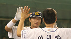 [OSEN=대구, 손찬익 기자] '국내 복귀파' 채태인(25, 삼성 외야수)이 데뷔 첫 홈런을 신고했다. 2일 대구구장에서 열린 LG 홈경기. 4-5로 뒤진 8회말 공격에서 진갑용의 대타로 타석에 들어섰다. 채태인은 볼 카운트 2-2에서 LG 마무리 우규민의 114km 짜리 커브를 그대로 받아쳐 우측 펜스를 넘는 110m 짜리...