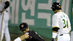 2007 삼성PAVV 프로야구 두산 베어스와 한화 이글스 경기가 2일 잠실 야구장에서 열렸다. 한화 7회초 무사 1루 김태균 삼진 아웃시 1루 주자 이영우 2루 도루 오버런 아웃 되고 있다./잠실=김영민 기자ajyoung@osen.co.kr <2007 삼성 PAVV 프로야구> [Copyright ⓒ 한국 최고의 스포츠 엔터테인먼트 전문 미디어...
