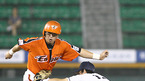 2007 삼성PAVV 프로야구 현대 유니콘스와 롯데 자이언츠의 경기가 2일 수원야구장에서 벌어졌다. 현대의 3회말 1사 1루 브룸바의 파울플라이 때 1루주자 김일경이 롯데 2루수 박현승에게 아웃되며 병살 처리 되자 아쉬워 하고 있다. /수원=황세준 기자 storkjoon@osen.co.kr <2007 삼성 PAVV 프로야구> [Copyright ⓒ...