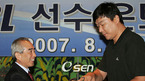 2006~2007시즌을 끝으로 현역 생활을 마감한 15명의 프로농구 선수 합동 은퇴식이 8일 오전 서울 역삼동 르네상스 호텔에서 열렸다. 김영수 KBL 총재가 표필상에게 은퇴반지를 끼워주고 있다. /황세준 기자 stokrjoon@osen.co.kr [Copyright ⓒ 한국 최고의 스포츠 엔터테인먼트 전문 미디어...
