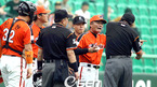 2007 프로야구 문학 홈구장에서 3연패를 기록중인 레이번과 SK전 3연패를 기록중인 정민철이 선발로 맞붙어 관심을 끈 SK 와이번스와 한화 이글스의 경기가 11일 인천 문학야구장에서 벌어졌다. 2회말 무사 이호준의 타구를 한화 유격수 김민재가 노바운드로 잡아 아웃이라며 유지훤 코치가 박기택 1루심에게 항의하고 있다. 판정은 원바운드로 인정 유격수...