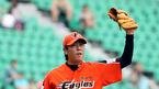 2007 프로야구 문학 홈구장에서 3연패를 기록중인 레이번과 SK전 3연패를 기록중인 정민철이 선발로 맞붙어 관심을 끈 SK 와이번스와 한화 이글스의 경기가 11일 인천 문학야구장에서 벌어졌다. 2회말 2사 3루 조동화의 직선타구를 잡은 정민철이 이호준의 타구때 벌어진 판정에 항의하듯 공을 잡은 글러브를 높게 쳐들고 있다./인천=손용호...