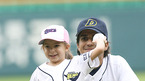2007 삼성PAVV 프로야구 두산 베어스와 롯데 자이언츠 경기가 11일 잠실 야구장에서 열렸다. 경기에 앞서 두산 리오스의 딸 가브리엘과 안경현의 아들 안준이 시구와 시타를 맡았다. 시구에 앞서 리오스가 딸 가브리엘 에게 시구 장소를 가리켜 주고 있다./잠실=김영민 기자ajyoung@osen.co.kr <2007 삼성 PAVV 프로야구>...