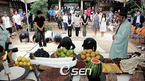 SBS 대하드라마 '왕과 나'의 오픈 세트장 준공식 및 고사가 13일 용인시 한국민속촌에서 열렸다. '왕과 나는' 왕의 그림자 내시들에 대한 이야기를 그린 드라마이다. 폭염 속에 진행된 이날 행사에서 구혜선이 전광렬에게 부채질을 해주고 있다. /황세준 기자 storkjoon@osen.co.kr [Copyright ⓒ 한국...