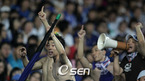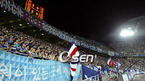 '삼성 하우젠 K리그 2007' 수원 삼성과 성남 일화의 경기가 15일 수원 월드컵 구장에서 열렸다. 수원이 2-1로 이겨 성남에 정규리그 첫 패배를 안겼다. 비가 오는데도 불구하고 운동장을 찾은 수원 팬들이 선수들을 응원하고 있다. /수원=황세준 기자 storkjoon@osen.co.kr [Copyright ⓒ 한국 최고의 스포츠...