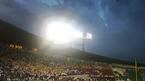 2007 프로야구 두산 베어스와 KIA 타이거즈의 경기가 15일 잠실야구장에서 벌어져 두산이 5-1로 앞서던 7회말 1사 후 비로 중단된 뒤 강우콜드게임이 됐다. 리오스는 7이닝 1실점하며 15승 고지에 올랐다. 비가 그쳤지만 내야 파울지역에 많은 빗물이 고여 조명등이 투영되고 있다./잠실=손용호 기자spjj@osen.co.kr <2007 삼성...
