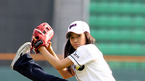 2007 프로야구 두산 베어스와 KIA 타이거즈의 경기가 15일 잠실야구장에서 벌어졌다. 경기에 앞서 여성 보컬그룹 '소녀시대'의 유리가 시구에서는 유례가 없는 언더핸드로 투구하기 전에 1루쪽을 바라보고 있다./잠실=손용호 기자spjj@osen.co.kr <2007 삼성 PAVV 프로야구> [Copyright ⓒ 한국 최고의 스포츠...