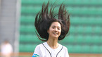 2007 프로야구 두산 베어스와 KIA 타이거즈의 경기가 15일 잠실야구장에서 벌어졌다. 경기에 앞서 여성보컬그룹 '소녀시대'의 유리가 시구를 위해 마운드에 올라 머리카락이 거꾸로 솟구칠 정도로 힘차게 인사하고 있다./잠실=손용호 기자spjj@osen.co.kr <2007 삼성 PAVV 프로야구> [Copyright ⓒ 한국 최고의...