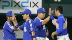 2007 삼성PAVV 프로야구 LG 트윈스와 삼성 라이온즈 경기가 18일 잠실 야구장에서 열렸다. 삼성이 2-1로 짜릿한 승리를 거둔 후 선동렬 감독이 선수들과 하이파이브를 하고 있다./잠실=김영민 기자ajyoung@osen.co.kr <2007 삼성 PAVV 프로야구> [Copyright ⓒ 한국 최고의 스포츠 엔터테인먼트 전문 미디어...