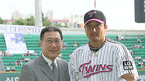 2007 삼성PAVV 프로야구 LG 트윈스와 삼성 라이온즈 경기가 18일 잠실 야구장에서 열렸다. 경기에 앞서 LG 트윈스 조인성의 1,000경기 출장 기념 시상식이 열렸다. 한국야구위원회 하일성 총장이 기념패 전달후 기념 촬영을 하고 있다./잠실=김영민 기자ajyoung@osen.co.kr <2007 삼성 PAVV 프로야구> [Copyright...