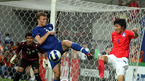 2008 베이징올림픽 축구 아시아 최종예선 한국과 우즈베키스탄의 경기가 22일 서울 상암월드컵구장에서 벌어졌다. 후반 이근호가 골키퍼 머리를 넘기는 재치있는 골로 역전을 시키고 있다./상암=손용호 기자spjj@osen.co.kr [Copyright ⓒ 한국 최고의 스포츠 엔터테인먼트 전문 미디어 OSEN(www.osen.co.kr) 무단전재 및...