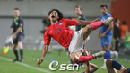 2008 베이징올림픽 축구 아시아 최종예선 한국과 우즈베키스탄의 경기가 22일 서울 상암월드컵구장에서 벌어졌다. 후반 강민수가 우즈벡 오른쪽 사각지대에서 슈팅을 하고 있다./상암=손용호 기자spjj@osen.co.kr [Copyright ⓒ 한국 최고의 스포츠 엔터테인먼트 전문 미디어 OSEN(www.osen.co.kr) 무단전재 및 재배포 금지]