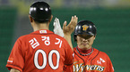 2007 삼성PAVV 프로야구 두산 베어스와 SK 와이번스의 경기가 23일 잠실 야구장에서 벌어졌다. SK의 4회초 2사 2,3루에서 김강민의 2타점 적시타 때 나주환과 정근우가 득점을 올린 뒤 동료들의 환영을 받고 있다./잠실=김영민 기자ajyoung@osen.co.kr <2007 삼성 PAVV 프로야구> [Copyright ⓒ 한국 최고의...