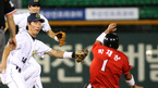 2007 삼성PAVV 프로야구 두산 베어스와 SK 와이번스의 경기가 23일 잠실 야구장에서 벌어졌다. 두산의 5회말 1사 1루에서 김진수의 2루 땅볼 때 1루 주자 홍성흔이 2루에서 SK 유격수 나주환에게 포스 아웃되면서 병살로 이어지고 있다./잠실=김영민 기자ajyoung@osen.co.kr <2007 삼성 PAVV 프로야구> [Copyright...