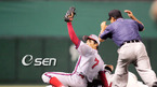 2007 삼성PAVV 프로야구 두산 베어스와 SK 와이번스의 경기가 23일 잠실 야구장에서 벌어졌다. SK의 4회초 2사 만루에서 정근우의 적시타 때 홈으로 쇄도한 2루 주자 최정과 두산 포수 채상병이 부딪치며 볼이 떨어져 세이프가 되고 있다./잠실=김영민 기자ajyoung@osen.co.kr <2007 삼성 PAVV 프로야구> [Copyright...