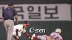 동대문운동장에서 벌어지는 마지막 고교대회인 제37회 봉황대기 결승전 덕수정보고와 충암고의 경기가 23일 벌어졌다. 충암고의 4회말 1사 1루 김동영이 내야땅볼 때 수비수의 실책으로 2루까지 진루하다 태그아웃되고 있다. /동대문=황세준 기자 storkjoon@osen.co.kr <2007 삼성 PAVV 프로야구> [Copyright ⓒ 한국 최고의...