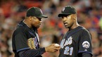 23일(한국시간) 뉴욕의 셰이스타디움에서 벌어진 뉴욕 메츠와 샌디에이고 파드리스의 경기 7회초 1사 1,2루 칼릴 그린 타석 때 메츠 1루수 카를로스 델가도가 투수 기예르모 모타에게 조언하고 있다./셰이스타디움(뉴욕)=주지영 특파원 jj0jj0@osen.co.kr [Copyright ⓒ 한국 최고의 스포츠 엔터테인먼트 전문 미디어...