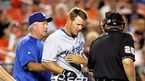 27일(한국시간) 뉴욕의 셰이스타디움에서 벌어진 뉴욕 메츠와 LA 다저스의 경기에서 4회초 다저스의 선두타자 제프 켄트가 존 메인의 투구에 왼쪽 얼굴을 맞은 뒤 트레이너가 상태를 살필 때 구심과 다저스 그래디 리틀 감독이 걱정스럽게 지켜보고 있다./셰이스타디움(뉴욕)=주지영 특파원 jj0jj0@osen.co.kr [Copyright ⓒ 한국...