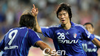 28일 수원 월드컵 경기장서 열린 삼성 하우젠 K리그 19라운드 수원 삼성과 전남 드래곤즈의 경기서 수원 하태균이 전반 선제골을 성공시키자 에두가 두 팔을 활짝 벌리며 맞이하고 있다. /수원=황세준 기자 storkjoon@osen.co.kr [Copyright ⓒ 한국 최고의 스포츠 엔터테인먼트 전문 미디어 OSEN(www.osen.co.kr)...