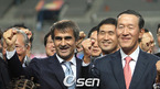 삼성하우젠 K-리그 2007 FC 서울과 포항 스틸러스의 경기가 29일 서울 상암월드컵구장에서 벌어졌다. 3-0으로 완승을 거둔 서울의 귀네슈 감독이 구단주인 허창수 GS 홀딩스 회장과 파이팅을 외치고 있다./상암=손용호 기자spjj@osen.co.kr [Copyright ⓒ 한국 최고의 스포츠 엔터테인먼트 전문 미디어...
