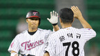 2007 삼성PAVV 프로야구 LG 트윈스와 롯데 자이언츠의 경기가 29일 잠실 야구장에서 벌어졌다. LG의 4회말 2사 1,2루서 이종렬이 좌측 펜스에 맞는 2타점 2루타를 친 뒤 윤덕규 코치의 격려를 받고 있다./잠실=김영민 기자ajyoung@osen.co.kr <2007 삼성 PAVV 프로야구> [Copyright ⓒ 한국 최고의 스포츠...