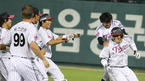 2007 삼성PAVV 프로야구 LG 트윈스와 롯데 자이언츠의 경기가 30일 잠실 야구장에서 벌어졌다. LG의 9회말 1사 만루서 조인성이 끝내기 안타를 날린 뒤 코칭스태프의 환영을 받고 있다./잠실=김영민 기자ajyoung@osen.co.kr <2007 삼성 PAVV 프로야구> [Copyright ⓒ 한국 최고의 스포츠 엔터테인먼트 전문 미디어...