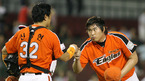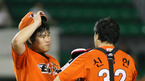 2007 삼성PAVV 프로야구 LG 트윈스와 한화 이글스의 경기가 31일 잠실 야구장에서 벌어졌다.한화의 류현진 선발 투수가 완투승을 따내며 경기 종료후 신경현 포수와 승리의 하이파이브를 하고 있다./잠실=김영민 기자ajyoung@osen.co.kr <2007 삼성 PAVV 프로야구> [Copyright ⓒ 한국 최고의 스포츠 엔터테인먼트 전문...