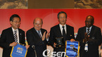 제프 블래터 국제축구연맹(FIFA) 회장이 내한, 9일 오후 서울 남산 하얏트호텔에서 공식 기자회견을 가졌다. 블래터 회장이 정몽준 대한축구협회장과 정동채 U-17 월드컵 조직위원장에게 감사패를 전달한 뒤 기념 촬영하고 있다./김영민 기자ajyoung@osen.co.kr [Copyright ⓒ 한국 최고의 스포츠 엔터테인먼트 전문 미디어...