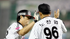 2007 삼성PAVV 프로야구 LG 트윈스와 롯데 자이언츠 경기가 11일 잠실 야구장에서 벌어졌다. LG의 6회말 2사 1루서 최동수가 선제 좌월 투런 홈런을 날리고 홈인하자 선발투수였던 봉중근(오른쪽)이 엉덩이를 두드리며 축하하고 있다./잠실=김영민 기자ajyoung@osen.co.kr <2007 삼성 PAVV 프로야구> [Copyright ⓒ...