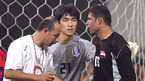 2008 베이징올림픽 축구 아시아 최종예선 한국과 시리아의 경기가 12일 서울 상암월드컵구장에서 벌어져 전반에 터진 김승용의 결승골로 한국이 1-0으로 이겼다. 경기 후 통증을 호소하는 상대 골키퍼에게 송유걸이다가가 인사하고 있다./상암=손용호 기자spjj@osen.co.kr [Copyright ⓒ 한국 최고의 스포츠 엔터테인먼트 전문 미디어...