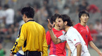 2008 베이징올림픽 축구 아시아 최종예선 한국과 시리아의 경기가 12일 서울 상암월드컵구장에서 벌어져 전반에 터진 김승용의 결승골로 한국이 1-0으로 승리를 거두었다. 경기 종료 휘슬이 울리자 시리아 선수가 주심에게 추가 시간이 벌써 다 됐냐며 항의하고 있다./상암=손용호 기자spjj@osen.co.kr [Copyright ⓒ 한국 최고의...