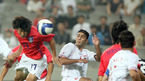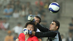 2008 베이징올림픽 축구 아시아 최종예선 3차전 한국과 시리아의 경기가 12일 서울 상암월드컵구장에서 벌어졌다. 전반 신영록이 시리아 문전에서 파울이나 다름없는 방해를 받으며 헤딩슛을 시도하고 있다./상암=김영민 기자ajyoung@osen.co.kr [Copyright ⓒ 한국 최고의 스포츠 엔터테인먼트 전문 미디어...