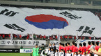 2008 베이징올림픽 축구 아시아 최종예선 3차전 한국과 시리아의 경기가 12일 서울 상암월드컵구장에서 벌어졌다. 경기에 앞서 애국가가 울려퍼지자 서포터스석에서 대형 태극기가 올라가고 있다./상암=손용호 기자spjj@osen.co.kr [Copyright ⓒ 한국 최고의 스포츠 엔터테인먼트 전문 미디어 OSEN(www.osen.co.kr)...